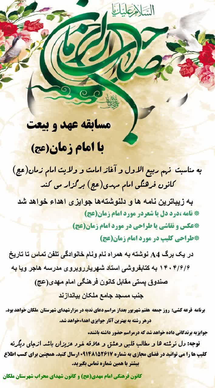 برنامه های نهم ربیع الاول ۱۴۰۴ شهریور 2, 1404 اسلایدر, اطلاعیه, مسابقات, مطالب ویژه, نهم ربیع الاول, همه پیام بگذارید 307 بازدید